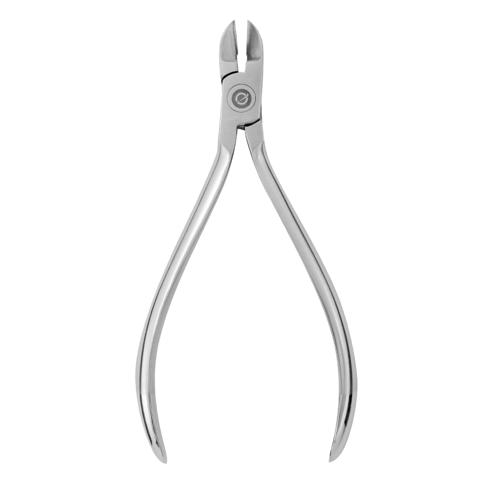 O Alicate Corte de Amarrilho Angulado destina-se ao corte de ligaduras metálicas que fixam os arcos aos bráquetes, por ser angulado facilita a realização do procedimento na região por permitir a maior aproximação das pontas ativas das aletas dos bráquetes.